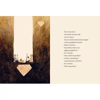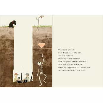 左起:美國童書作家麥克.巴奈特與畫家雍.卡拉森。 從永遠用不完的毛線如何牽繫起小鎮人們的情感,到兩個下定決心要認真挖土挖個不停、直到挖到什麼奇妙的東西才罷手的小男孩……麥克.巴奈特與雍.卡拉森這對令人驚奇的創作拍檔,每次出手都讓讀者大呼過癮。他們一次又一次抱回凱迪 more From the award-winning team behind Extra Yarn, and illustrated by Jon Klassen, the Kate Greenaway-winning creator of This Is Not My Hat and I Want My Hat Back, comes a perfectly paced, deadpan tale full of visual humour. Sam and Dave are on a mission. A mission to find something spectacular. So they dig a hole. And they keep digging. And they find ... nothing. Yet the day turns out to be pretty spectacular after all. Attentive readers will be rewarded with a rare treasure in this witty story of looking for the extraordinary - and finding it in a manner they'd never expect.