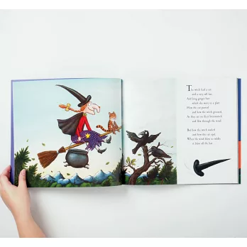 她戴著一頂尖尖高高的巫婆帽,長長的金黃頭髮編成像粗繩子般的辮子,上頭還綁著 美麗的蝴蝶結,手裡拿著魔杖和大鍋……哇!這是一趟多麼愉快的飛行呀!忽然,吹來一陣風,巫婆的帽子不小心飛走了!幸好,有一隻小狗幫巫婆撿回了帽子,而 巫婆也讓牠一起坐上掃帚,加入飛行行列。但是,巫婆沿路不停的掉東西,而幫她撿拾東西的小動物越來越多,掃帚簡直快「客滿」坐不下了!這該怎麼辦好?