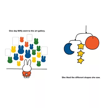 Ever since Dick Bruna first created Miffy in 1955, she has endeared herself to generations of young children and has become one of the best-loved children's characters of all time. In this charming new addition to the Miffy story, Miffy takes inspiration from a visit to a museum and decides to become an artist herself. Looking at the colors and shapes of the world around her, she discovers what fun it can be to make pictures of the things she sees. By the end of the day, her bedroom walls are full of her wonderful artwork.