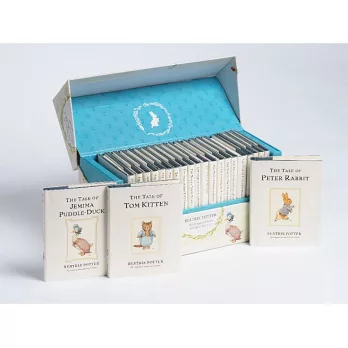 輕輕打開《彼得兔百年經典故事全集》,23本最經典的《Peter Rabbit》系列繪本整齊排列在內,從《小兔彼得的故事》、《母鴨潔瑪的故事》、《小兔班傑明的故事》…等等,每個迷你繪本都包括完整故事和作者碧雅翠斯.波特(Beatrix Potter) 的精緻水彩插畫,巴掌大的可愛故事書令人愛不釋手,更適合加入孩子們的小小圖書收藏。