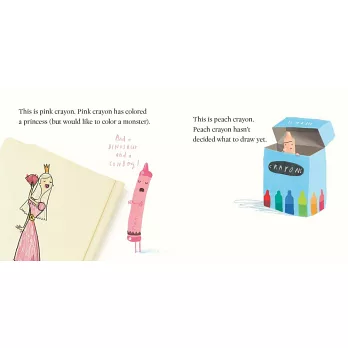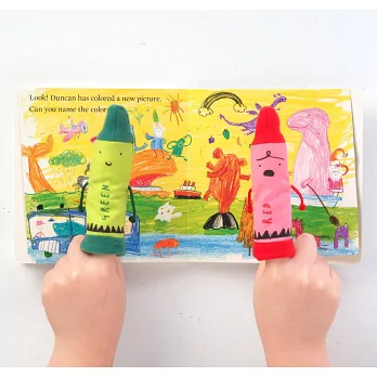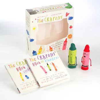 禮盒組內含紅色+綠色蠟筆造型手指偶及《The Crayons’ Book of Colors》、《The Crayons’ Book of Numbers》兩本硬頁故事書。兩本書的內容改編自《蠟筆大罷工》的故事情節,特意選用較簡易的語句描繪蠟筆們的心聲,讓年幼的孩子們易於理解故事內容。
