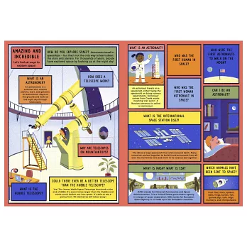 How old is the universe? What was the Big Bang? How does space travel work? Find out in this interactive book with 100 questions and answers and 70 flaps to lift. Discover what a planet is, look at the eight planets of the solar system, learn why a year is 365 days long, find out what life is like for astronauts, see the amazing Milky Way and take a closer look at life outside our galaxy … could aliens really exist?
