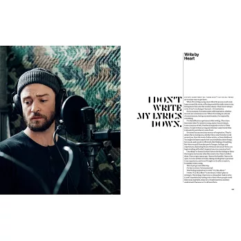 "I can’t help that my music shows who I am in this moment, what I’m drawn to, what I’m wondering about. I don’t want to help it. What you hear in the words, what you feel in those songs—that’s what I was feeling when I wrote them. I want you to see me, just like I want to see you." — Justin Timberlake