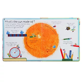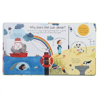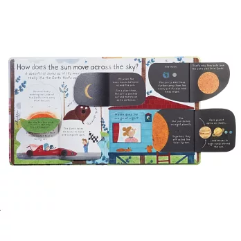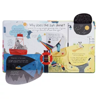 Why does the sun shine? takes a playful, informative look at the importance of the sun to life on Earth. Quirky scenes, simple text and friendly flaps answer charming questions such as ’How does the sun help us?’, ’Why are some places hotter than others?’ and ’Where does the sun go at night?’