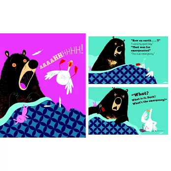 鴨子身為一個難以擺脫又天性遲鈍,喔,不,是意志堅定又元氣十足的好鄰居,今晚的當務之急,就是和大熊一起做各種有趣的事,儘管大熊看起來好像有一點點累?!