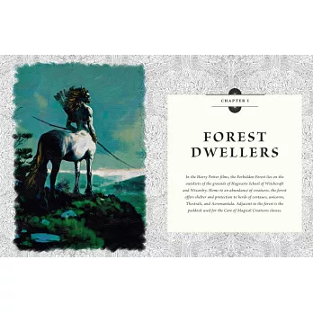 《森林、湖與天空生物》收錄霍格華茲周遭的禁忌森林、大黑湖以及天上飛的奇獸等介紹,從人馬、人魚、角尾龍到電影中的恐怖怪獸,以詳細的插圖、概念藝術、幕後照片與文字來解說這些魔法生物是如何從小說描述蛻變成電影中的影象。