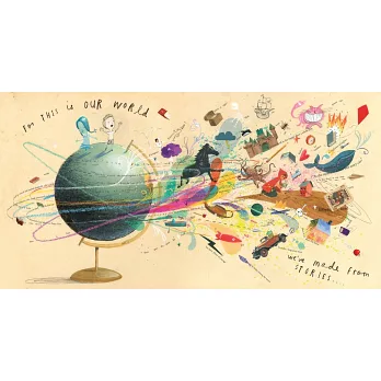 來自英國北愛爾蘭的奧利佛.傑法一直是位揉合諸多矛盾對立特質的藝術家。他的網站首頁是他穿著短褲與工作圍裙背對鏡頭、面對一幅浪濤洶湧的畫作,專心工作的相片,他穿著短袖,手臂上露出刺青,據說刺青的圖案是對偶定理的等式。他的臉書上記載的去年9大亮點,除了發表的雕塑作品、童書作品與持續進 more 《書之子》(A Child of Books)是一本看似抽象又具象的書,女孩帶著男孩悠遊於書的世界裡,在不同的環境裡走出自己的世界。看扉頁上羅列的一本本書,彷彿是一張建議閱讀書單,但絕對不是!這是一份寫成不同生命故事的書單——我們的生命是由一段段不同故事組成,有的不知道怎麼開始,有的不知如何結束;還有的被打斷,或是接成另外的故事,教人經常措手不及,只能驚呼「怎麼會這樣!」來掩飾自己的茫然。
