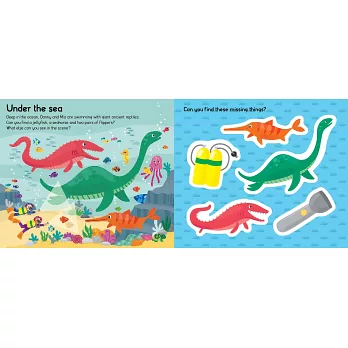 With a dinosaurs, magnifying glasses, binoculars and many more items to play with, children will have fun looking for dinosaurs, while the illustrated board book shows dinosaurs in the sea, on land and in the sky. There's information, too, about what each play piece is.