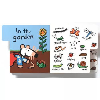 Join Maisy as she investigates intriguing insects, birds, mammals, and fish. Each spread focuses on a different habitat — desert, arctic, mountain, savanna, ocean, jungle, and farm — and depicts some of the animals that can be found there. Bright, colorful, clearly labeled illustrations help build young children’s vocabulary and understanding of the various animals, while easy-to-use tabs let them find their favorite pages again and again.