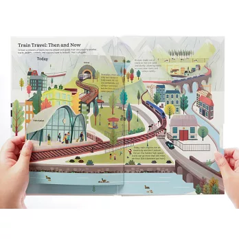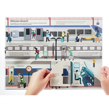 列車即將進站~快上車!跟著書頁回顧火車演進史,了解鐵軌的建造過程,觀察火車站的設計。互動機關,邀請讀者打開車門、探索列車內部構造,轉動轉盤,深入了解火車世界。考考小火車迷,歐洲之星、東方快車、磁浮列車等知名車款具備什麼特色,位於哪些國家?細究書頁上的文字,你答對了嗎?