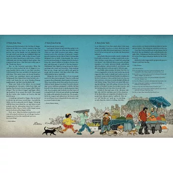 用精采圖像帶領讀者深入感受敘利亞的風土民情,用柔和療育的故事讓我們看到人性的光輝與溫暖,這本書讓我們在難民之外,也關注同樣無家可歸的動物。這是一個在苦難中仍見愛與希望的故事,是一本最適合陪伴孩子關懷世界、培養同理心的新公民繪本!