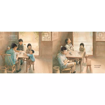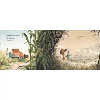 Jason Chin’s illustrations move between China and the American Midwest and were created with a mixture of traditional Chinese brushes and western media. The dreamy, nostalgic color palette brings this beautiful story to life.