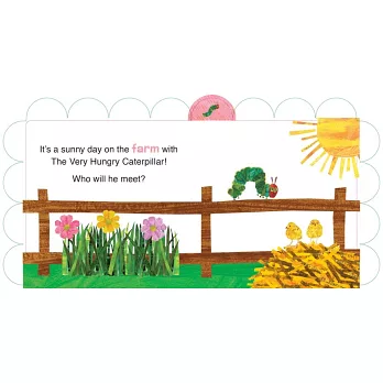 Join the Very Hungry Caterpillar on a day at the farm as he is introduced to all different species of barnyard animals. Complete with eight colorful, durable tabs depicting specific animals such as pigs, horses, and more, this interactive board book is the perfect way to teach your young reader about all the creatures they might find on a farm. With art in Eric Carle’s signature illustrative style, against a simple text in large, clear type, this is the perfect addition to every child’s library!Eric Carle, the creator of The Very Hungry Caterpillar, is unquestionably one of the greatest children’s book artists of all time. He continues to produce his best-selling picture books, and recently won the Laura Ingalls Wilder Award for lifetime achievement in children’s literature. His books, as well as the Eric Carle Museum of Picture Book Art in Amherst, Massachusetts, continue to keep him at top momentum.
