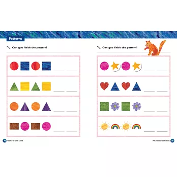 透過艾瑞卡爾繽紛色塊及圖案,引導孩童在遊戲中建立及加強學前技能。全書穿插《好餓的毛毛蟲》、《小種籽》、《好忙的蜘蛛》等經典故事插圖,讓孩童在學習中再度體驗艾瑞卡爾創作的不敗魅力!