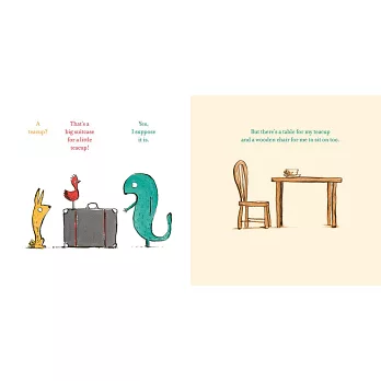 ▍如舞台劇般的畫面呈現,以輕鬆又具戲劇張力的方式探討流離失所和難民的主題。但不僅只是一本講述難民或移民的書,也是一本關於我們自己的書,行李箱裝載著回憶、我們的家、愛、過去的生活,以及現在可以分享的。