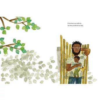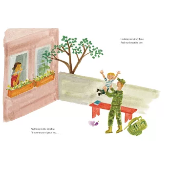 曾以《市場街最後一站》榮獲凱迪克獎的克里斯汀.羅賓遜(Christian Robinson)在本書中,以柔和的水彩畫創作出溫暖的畫面,樹下的長凳、歡愉的小鳥,並透過母親的眼睛,反映出父子相處的溫暖和美好時刻。你可以看到其中一幅畫彷彿描繪了梅根、哈利與Archie三人的溫馨畫面,另一個場景則是身穿軍裝的父親高高抱起孩子,母親開心落淚的畫面。《The Bench》動人地捕捉了父子間的親密關係,並使我們發現在現代家庭中愛能展現的各種形式與表達方式。