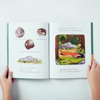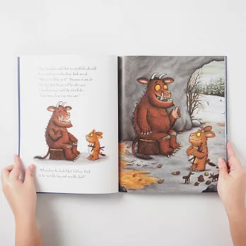 本套書收錄The Gruffalo, The Gruffalo’s Child, Room on the Broom等八本經典繪本,掃描書上的QR Code,即可線上聆聽由英國知名演員伊美黛史道頓(Imelda Staunton)等人所朗讀的精采故事內容。