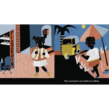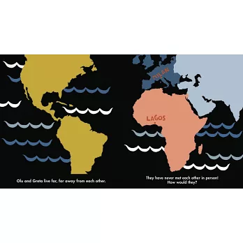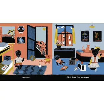 Olu lives in Lagos, Nigeria; his cousin, Greta, lives in Milan, Italy. Though their lives may be different, their ways of living and playing are quite similar. They both roller skate; they both skip down the street; they both play with toy trains, trucks, and boats... and they both dream of meeting and being together. Debut author-illustrator Diana Ejaita references her own childhood and heritage to create a rich, poignant, and authentic portrayal of Nigeria, of Italy, and of the unity of childhood.