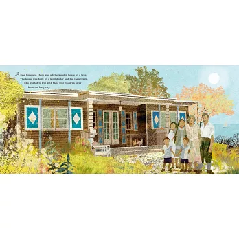 全書插畫典雅、細膩,插畫家布莉塔用木紋一般的筆觸線條,與絢爛、豐富的色彩,刻劃書中主角湖濱小屋。相對於靜止原地的木屋,歷史洪流中不斷變化的人、事、環境,則以大面積的色塊、斑駁的質感呈現。在時間刷洗下,世間萬事彷彿都一一凋落,逐漸被遺忘。那些來來去去、圍繞著木屋的人影,身型細瘦、微小,無論士兵或難民,皆低垂著頭,少數望向讀者的臉龐,面容也冷然、模糊,彷彿小屋記得的,不過是人間的聚散無常、悲歡離合。