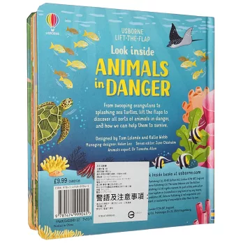 這本以「瀕臨絕種動物」為主題的翻翻書,探索各種動物的習性,以及受到人類威脅的現況。 書中除了展現動物面臨的危機,每一頁還述說科學家和政府為了拯救這些動物所完成的計畫,並提出小讀者能為牠們盡份心力的方式。