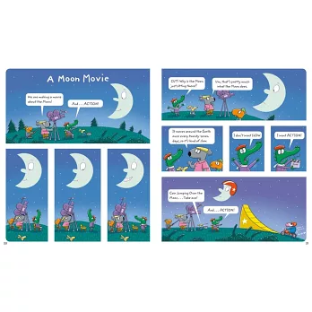 快樂郡的一天開始了!大家忙著洗衣服,種向日葵,還有忙著處理各種事情,直到月亮升起之時,夜間冒險就此展開!小讀者能一邊跟著小茉莉製作月光下的影子、嚎叫,一邊透過簡單易懂、引人入勝的互動內容,認識與太陽和月亮有關的人物與科學知識,包括:水循環、光合作用、月相、太陽系、太陽能。
