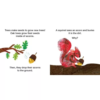 Explore the transformation of an acorn into an oak tree with help from the world’s favorite caterpillar! Little ones will learn all about how squirrel’s bury acorns, how their seeds grow underground, and how a tiny green shoot becomes a mighty tree! The miracles of nature are at the heart of this early-learning series centered around life cycles, featuring simple text in large, clear type and Eric Carle’s vibrant, colorful illustrations.