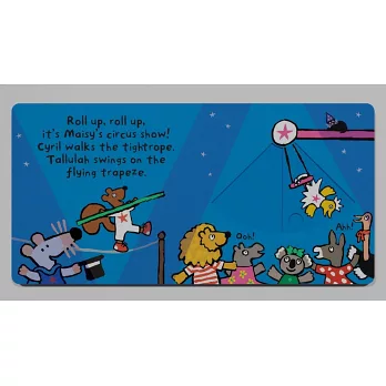 Nothing beats a circus, and Maisy’s spectacular show stars all her favorite friends. In this interactive board book, little ones can help Tallulah swing upside down on the trapeze, set Eddie and Charley’s juggling routine in motion, and see the swimming team dip and dive. But grab some popcorn for the grand finale, when Maisy bounces high on her trampoline. Boing, boing! What an amazing show!