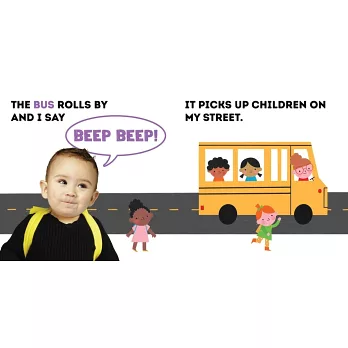 書中每頁都穿插最讓孩子感興趣的的寶寶臉孔、各種交通工具照片,吸引孩子目光。