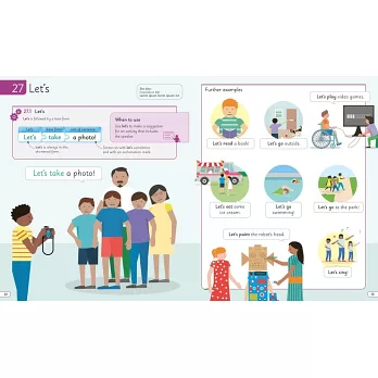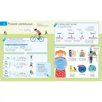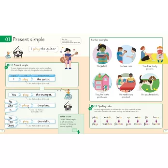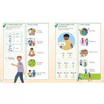 這本English Grammar: A Simple Visual Guide to English專為5-9歲英文初學者設計,以兒童食衣住行育樂的生活情境,設計出最生活化的例句和圖示,易學好懂,跟著內容循序漸進地練習,很快就能將新學會的文法規則和短句應用在生活中,提升表達和應對能力。適合作為準備劍橋兒童英語認證及倫敦聖三一英語口試 第1到3級考試的英語學習教材。
