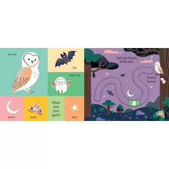 快來幫在樹林裡迷路的小兔子、小狐狸、小熊和小貓頭鷹尋找回家的路!一路上他們會發生什麼故事呢?