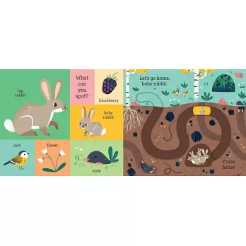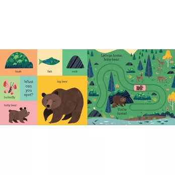 Meet rabbit, fox, bear and owl - four adorable baby animals who are lost in the woods! With easy-to-use moving parts and four unique tracks to develop hand-eye coordination and concentration, babies and toddlers will enjoy taking the baby animals home in this robust, satisfying board book.