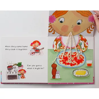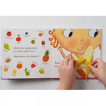吃午餐的時間到了,露露覺得好餓呀,你可以幫露露用魔鬼氈把圍兜兜繫起來嗎?午餐時露露吃了紅蘿蔔,還吃了一個倒上許多蜂蜜的優格,你可以摸看看蜂蜜是不是黏黏的呀?天氣好的時候,露露會和朋友去野餐,掀開野餐盒,你看到露露帶了什麼食物呢?露露還吃了一根香蕉,你可以幫露露把香蕉皮剝掉嗎?午餐後,媽媽和露露一起去超市買食材,回家煮了一大鍋義大利麵,你也想摸摸看露露盤子裡的麵條是不是QQ的嗎?