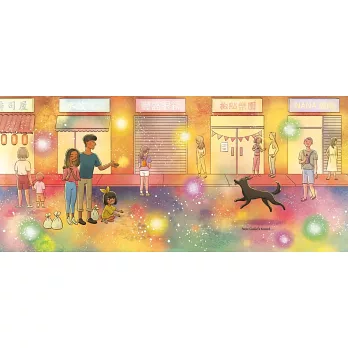 "While resting on a stoop, Gogo smells something sweet and spicy on the breeze. It leads him to a place he’s never been--a bustling night market where vendors sell delicious treats. As he wanders, sniffing for scraps, GoGo discovers something else as well: a little girl who has gotten separated from her parents. He knows he can help and guides her through the market--to where her worried parents wait for her--with open arms for their daughter and GoGo, their new pet"--