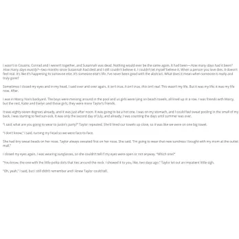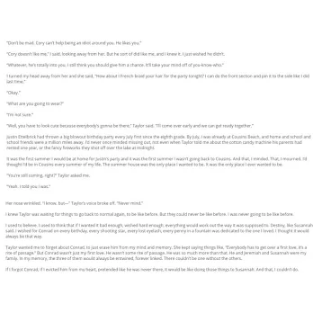Belly finds out what comes after falling in love in this follow-up to The Summer I Turned Pretty from the New York Times bestselling author of To All the Boys I’ve Loved Before, Jenny Han.It used to be that Belly counted the days until summer, until she was back at Cousins Beach with Conrad and Jeremiah. But not this year. Not after Susannah got sick again and Conrad stopped caring. Everything that was right and good has fallen apart, leaving Belly wishing summer would never come. But when Jeremiah calls saying Conrad has disappeared, Belly knows what she must do to make things right again. And it can only happen back at the beach house, the three of them together, the way things used to be. If this summer really and truly is the last summer, it should end the way it started--at Cousins Beach.Jenny Han is the #1 New York Times bestselling author of the To All the Boys I’ve Loved Beforeseries, now Netflix movies. She is also the author of The Summer I Turned Pretty series, Shug, and Clara Lee and the Apple Pie Dream. She is the coauthor of the Burn for Burn trilogy, with Siobhan Vivian. Her books have been published in more than thirty languages. A former librarian, Jenny earned her MFA in creative writing at the New School. She lives in Brooklyn, New York.