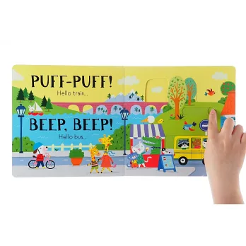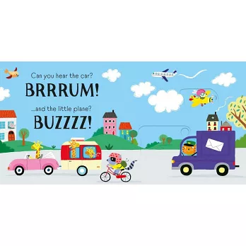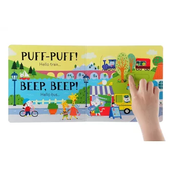 滑動裝置,就能聽到一種交通工具的聲音,往另一個方向滑,就能聽到另一種交通工具的聲音。收錄飛機、火車、汽車、摩托車和公車等多種音效,邀請孩子五官大開來探索!