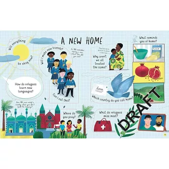 這本書透過直接而簡單的問題,深思熟慮又富有同情心的回答,探討關於難民的所有大小問題。書中問題涵蓋難民旅程的各個階段,從逃離危險、踏上新旅程、尋求庇護,一直到尋找一個可以稱之為家的地方,所有小朋友會感到好奇的難民問題,都可以在這本書裡得到解答。