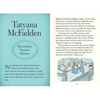 收錄超過十六名國際頂尖運動員激勵人心的成長故事,包含體操天后拜爾絲、飛魚泳將菲爾普斯、女子網球名將大坂直美等。此外運動員也坦率揭露成長過程中的小插曲。面對日復一日嚴格的訓練,運動員如何調適,挑戰自我極限?閱讀真實的傳記故事,激勵孩子們探尋未來的人生道路,勇敢實踐夢想。