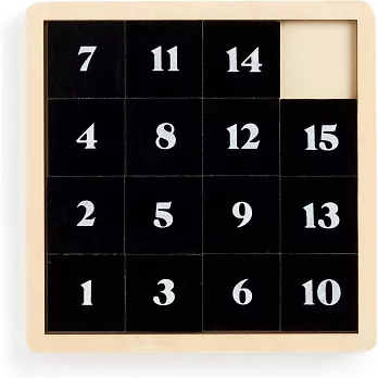 * Toplay "Game of Fifteen", the 16th tile is removed. The player slides the tiles, without lifting them off the surface, to match the multiple number sequence challenges