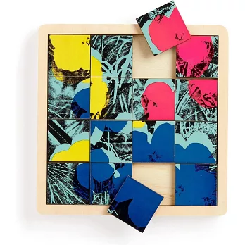 * The Andy Warhol Flowers 2-in-1 Sliding Wood Puzzle includes both a puzzle and a game