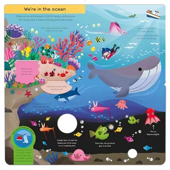 帶孩子跟著這本遊戲書,展開上山下海的環球之旅吧!坐上車到繁忙的都市逛逛,紅燈停、綠燈行,一起注意交通號誌吧!搭乘潛水艇,瞬間來到神秘的海底世界,認識小丑魚、燈籠魚、大鯨魚,欣賞美麗的珊瑚礁。翻到下一頁,哇!有刺刺的仙人掌、長睫毛的駱駝,和沙漠綠洲,真新奇!下一個旅遊地點有好多好多的企鵝,還有冰山,猜一猜這是什麼地方?不只這樣呢!環球之旅,還包含了草原、高山和雨林等地球六大生態棲息地。