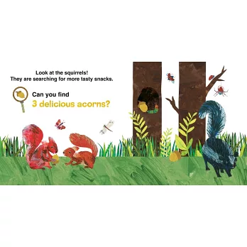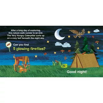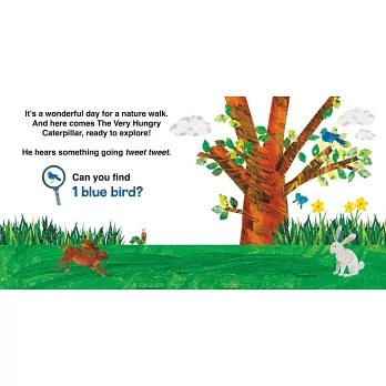 Look for and count the various animals on each spread while on a nature walk with The Very Hungry Caterpillar.