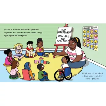 Developed by experts in the fields of early childhood and activism, this topic-driven picture book offers clear, concrete language and compelling imagery to introduce the concept of justice. This book aims to ground the idea of justice within the responsibilities and benefits of being part of a healthy community.