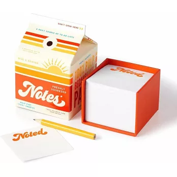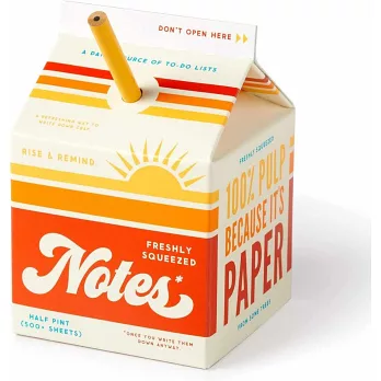 看起來像是柳橙汁,其實一打開盒蓋,裡面藏有500多張可撕便條紙,可以用來寫待辦事項,甚至還能拿來塗鴉。別忘了,這款便條紙還附贈一枝長約9公分的小鉛筆,不用時可以插在吸管孔裡,偽裝成是吸管!