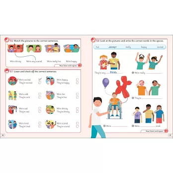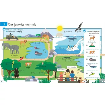 與學習書一樣的單元內容,這本練習本為孩子提供許多額外的練習。書中包含了數百個練習題,包括連連看、看圖填空、圈字、聽力等各類型的練習,還附有線上收聽音檔,讓孩子能反覆練習課本裡學到的詞彙、文法、句型結構,掌握語言學習的基礎知識,不但能讓孩子學習到最正確的發音,還能加深孩子學習印象,聽、説、讀、寫全方位建立學習外語的自信心。