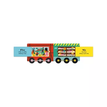 英國知名童書出版社Nosy Crow,繼手風琴摺頁書《Alphabet Street》、《Christmas Street》大受歡迎,推出第三本超可愛的火車數字書。小朋友一起來找找:誰在化妝室梳妝打扮?誰很有秩序的排隊呢?