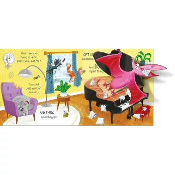 You'd better not open the flaps... because the dinosaurs just might jump out if you do! Children will love exploring the deliciously unexpected world of this book, as each page reveals a hilarious pop-up dinosaur springing out of a cupboard or a fridge or the shower. The chaos increases with every page turned, until all the dinosaurs are revealed together in a spectacular pop-up at the end.