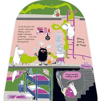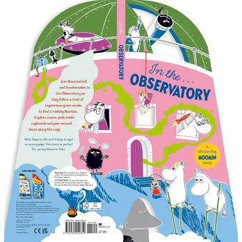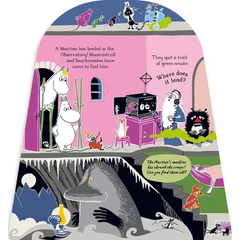 Moomintroll and Snorkmaiden are following a trail of green smoke as they search for a Martian in the Observatory . . . but what will happen when they find him? Join Moomintroll and Snorkmaiden as they find mysterious things happening while they follow the smoke, past Stinky, Little My and some shrunken Moomins and creeps. Along the way, lift the flaps to explore rooms, peek into cupboards and peer behind doors. There are all kinds of wonderful things to find!