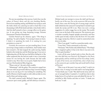 雖然還是帥氣,霍爾與動畫版相比,顯得更加讓人生氣,但又有對於解決問題的獨到見解與深謀遠慮。蘇菲則是溫柔裡多添了一些嘮叨。相較之下,卡西法的活靈活現為這部作品灌入了有趣、輕鬆的閱讀感。
