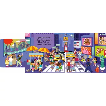 Push, pull and slide the scenes to explore New York City: climb up the Statue of Liberty, ride the subway, enjoy a boat ride in sunny Central Park and take in the lights, sights and buzz of Times Square at night!
