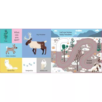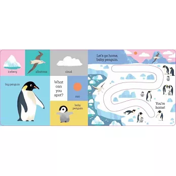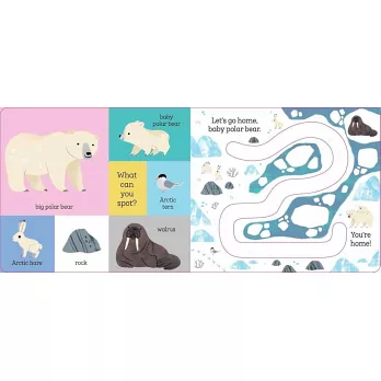 快來幫迷路的企鵝寶寶、馴鹿寶寶、北極熊寶寶和海豹寶寶尋找回家的路!一路上他們會發生什麼故事呢?